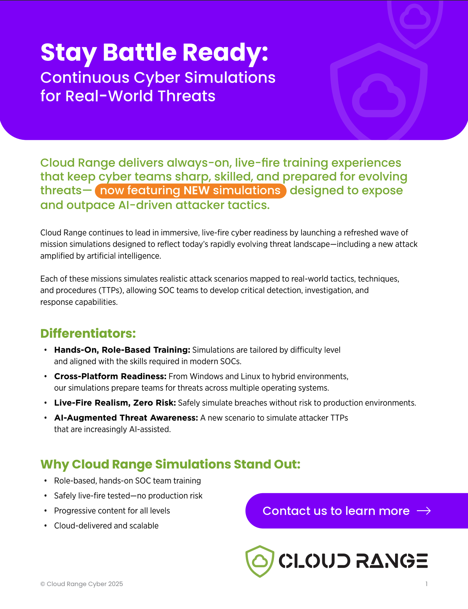 As cyber threats grow more intelligent and more elusive, Cloud simulation leads the charge with next-generation simulation content built for today’s SOC teams. Our latest release introduces AI-aware threat experiences that reflect the rapid evolution of attacker tactics, preparing defenders to detect and respond to threats that move like machines—but mimic humans.